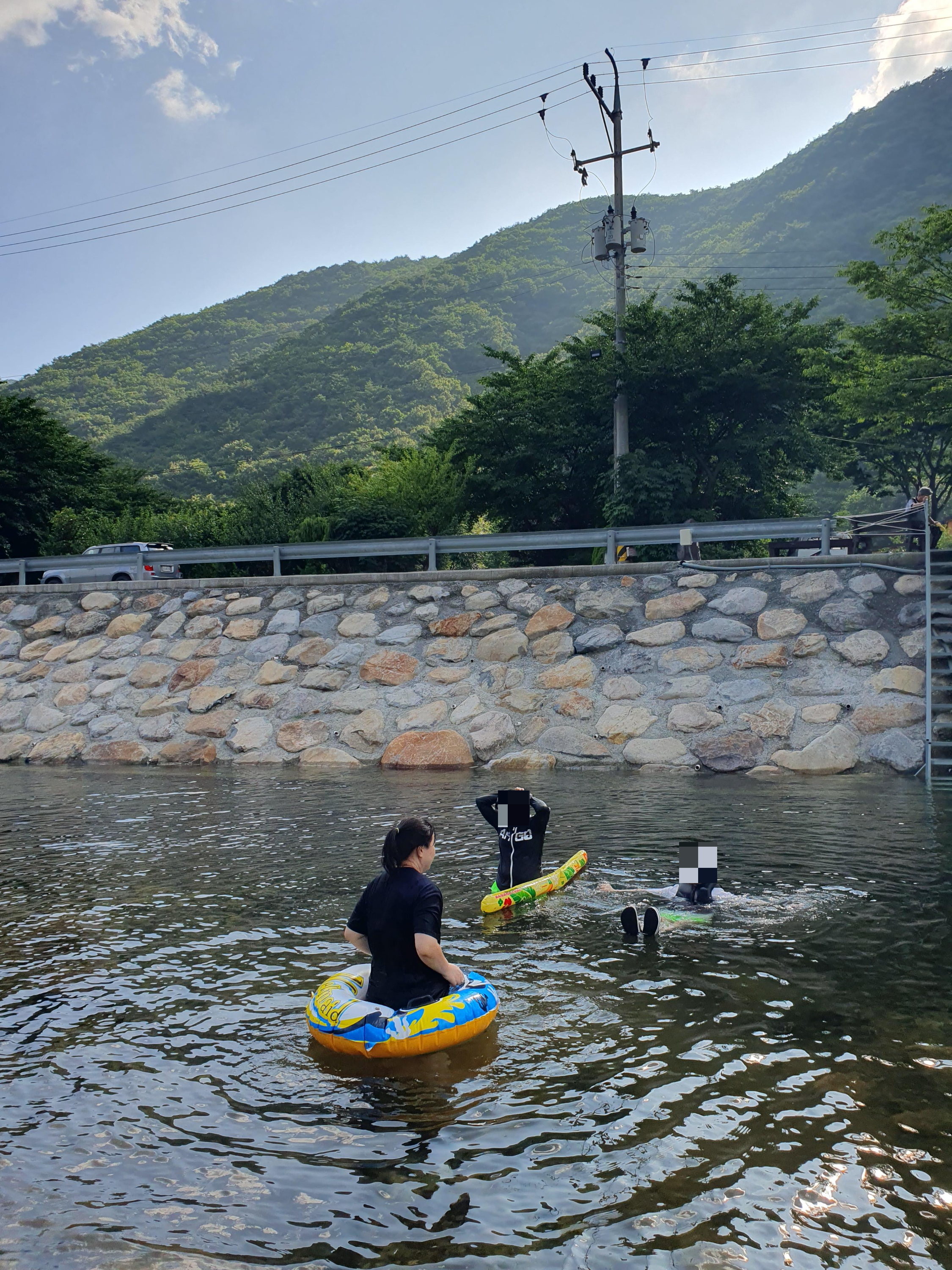 사장님께 물어보니 5분만 앞에 가서 강가에서 놀면 된다고 했다.
