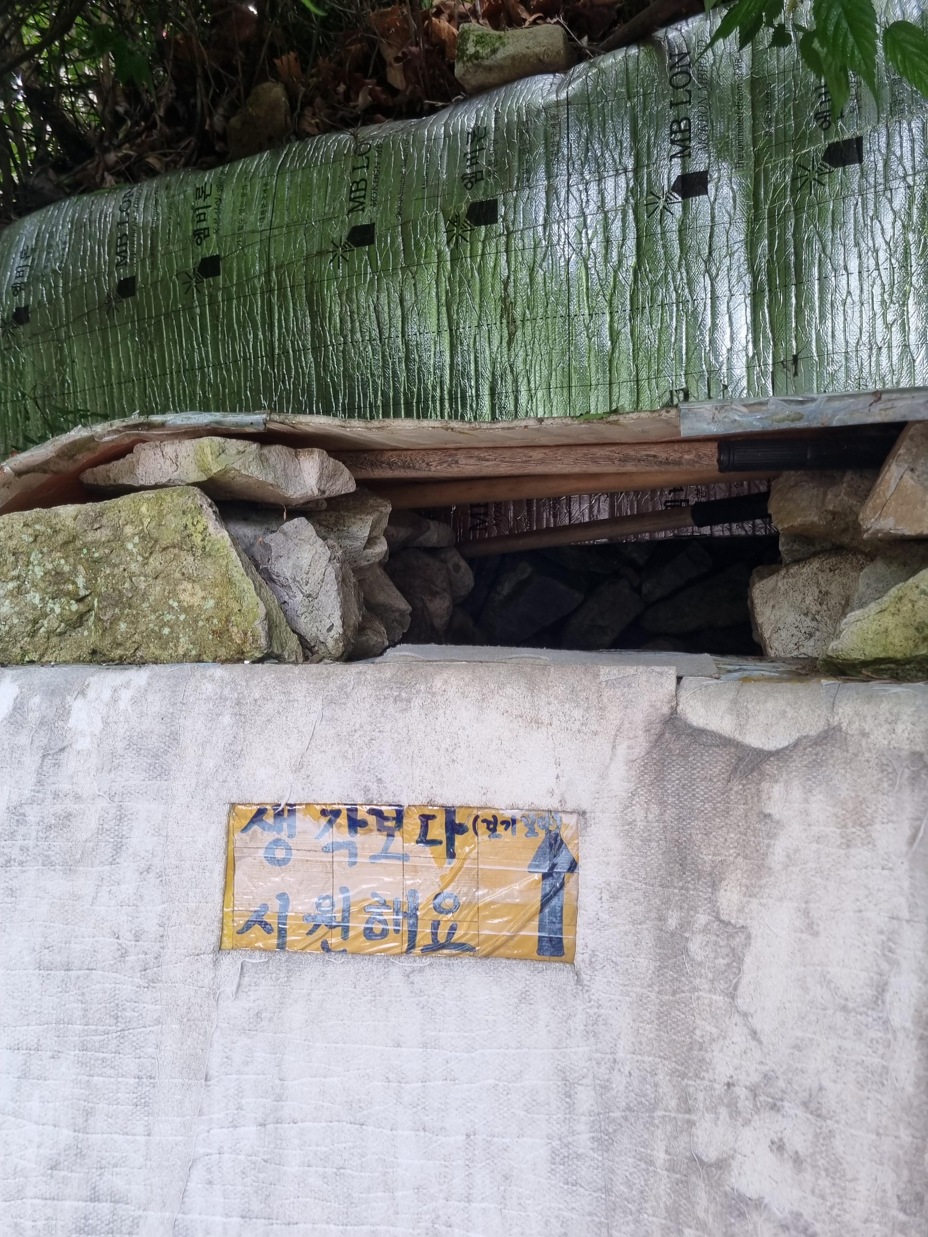 금요일까지 비가 왔어서 절벽을 타고 물이 흐르고 있었다.