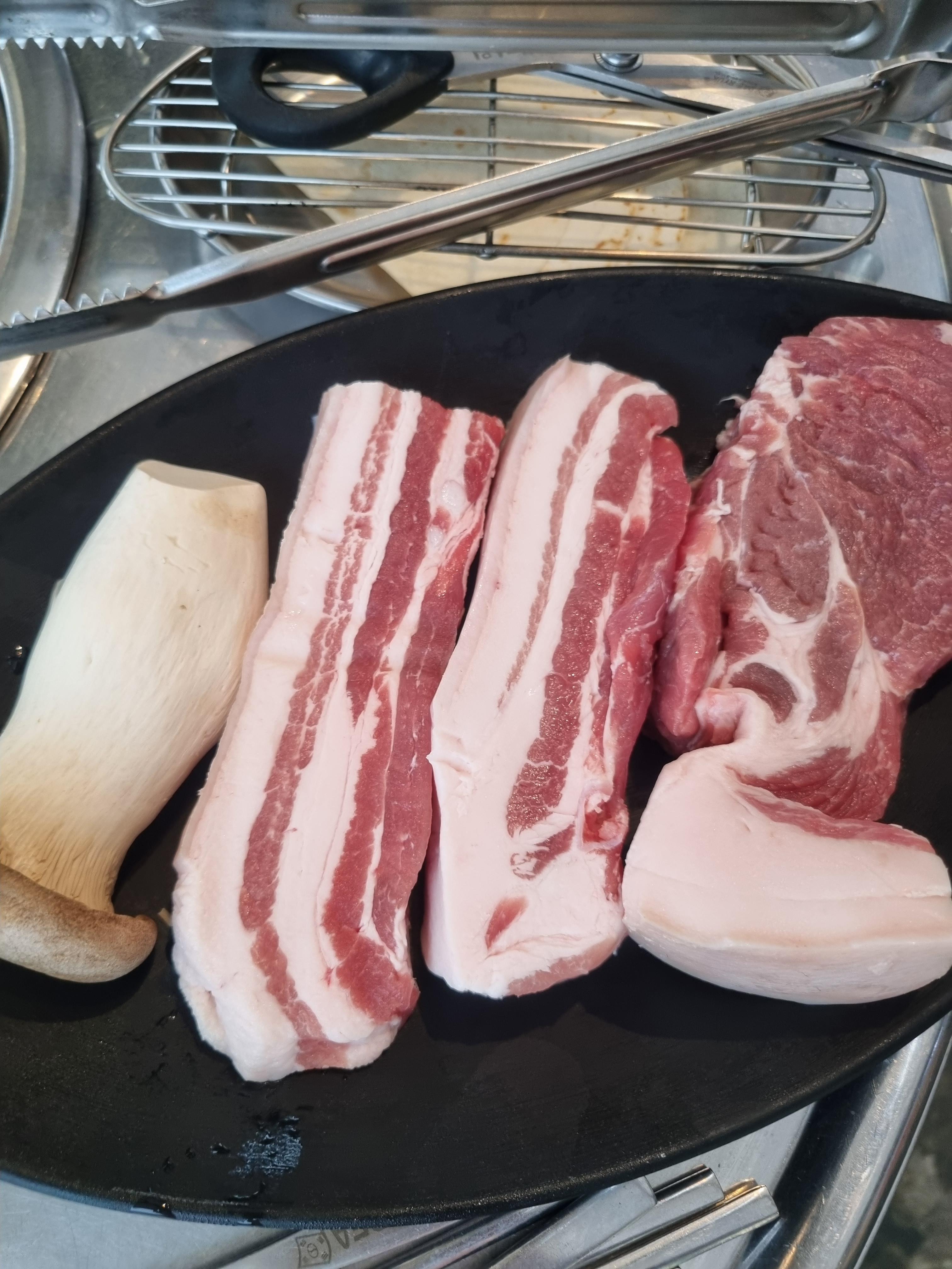삼겹살과 목살이 나왔다. 두툽한 두께를 보시라~!!