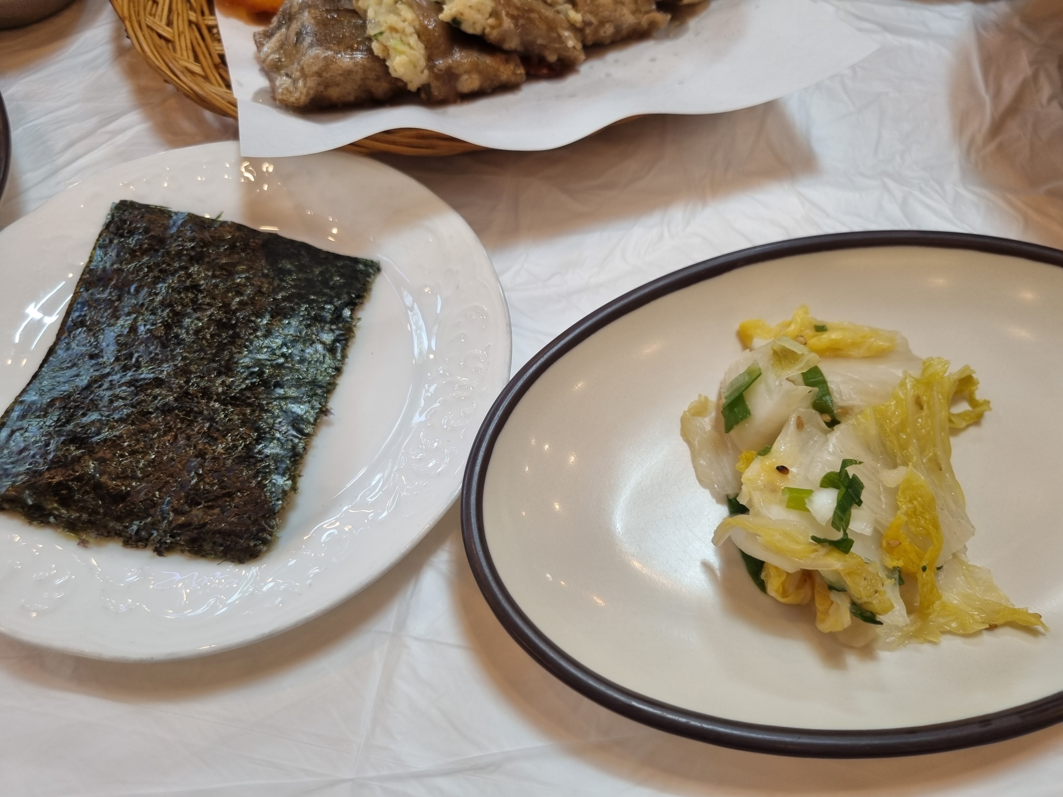 김치전, 늙은 호박전, 해물파전, 메밀전병이 나왔다.