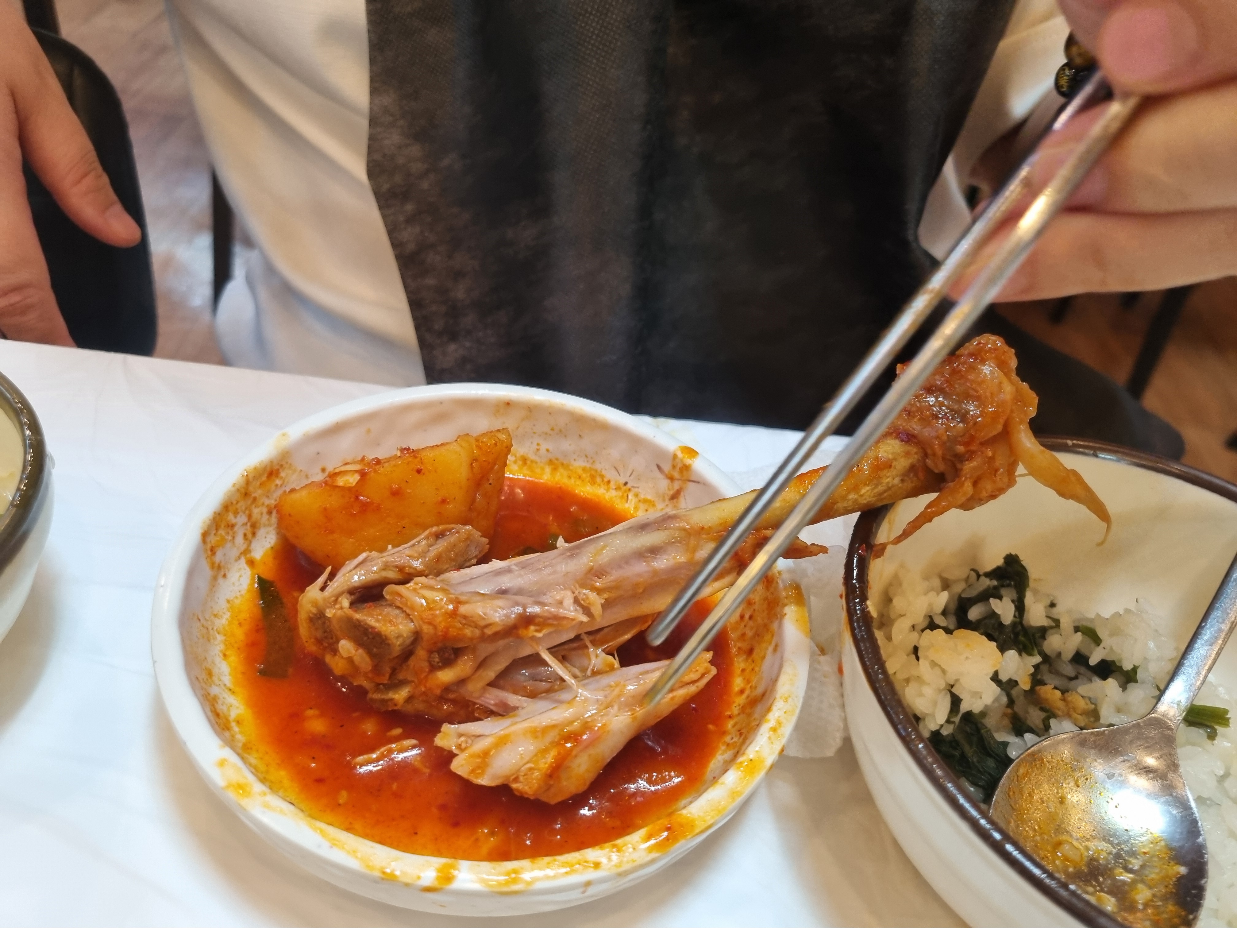 그리고 토종닭으로 만든 닭볶음탕! 다리 크기가 어마어마했다.