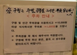 그래서 인근주차장에 주차하고, 주차권을 가져오면 1,000원을 지원해줍니다!