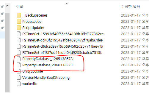 해당 프로젝트 폴더에 들어가서 Temp폴더에 들어가서 PropertyDatabase로 시작하는 2개를 삭제하면 된다.