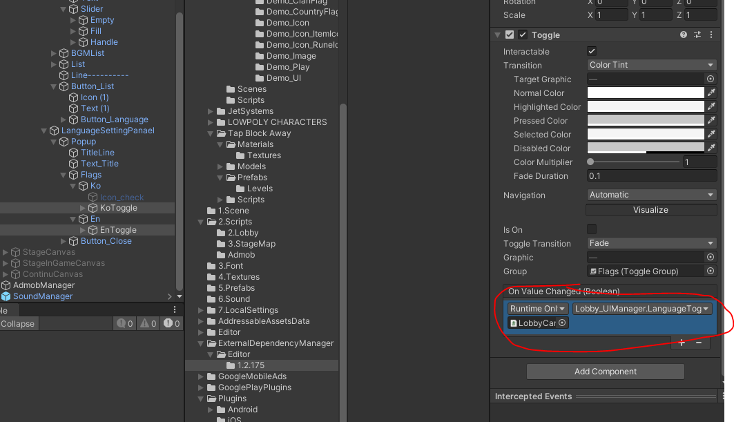 작성한 후 LanguageToggleCheck() 함수를 자식 토글들한테 넣어주면 끝!