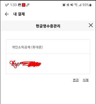 내 결제 - 현금영수증 발행정보 관리 - 내 전화번호 등록