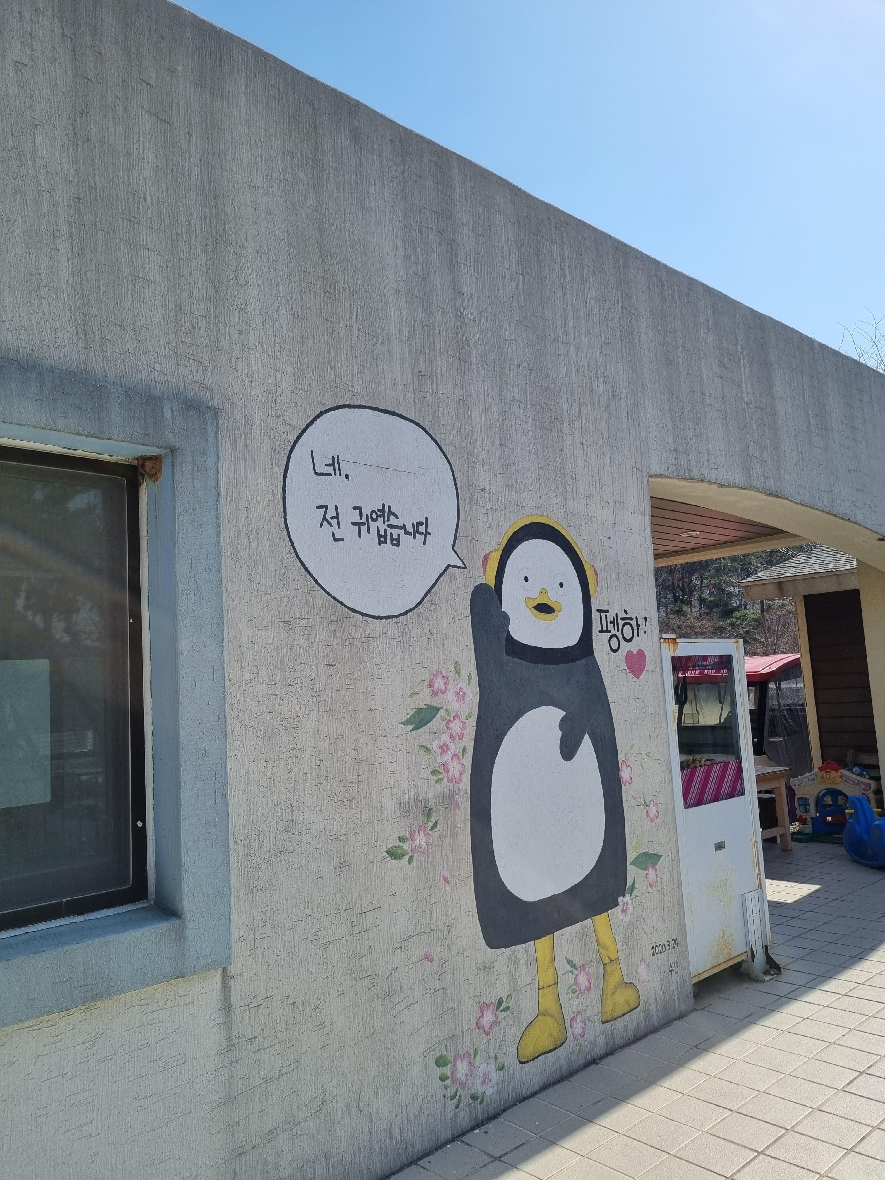매점 앞에 포토존이 있고, 펭수 벽화가 그려져 있었다.