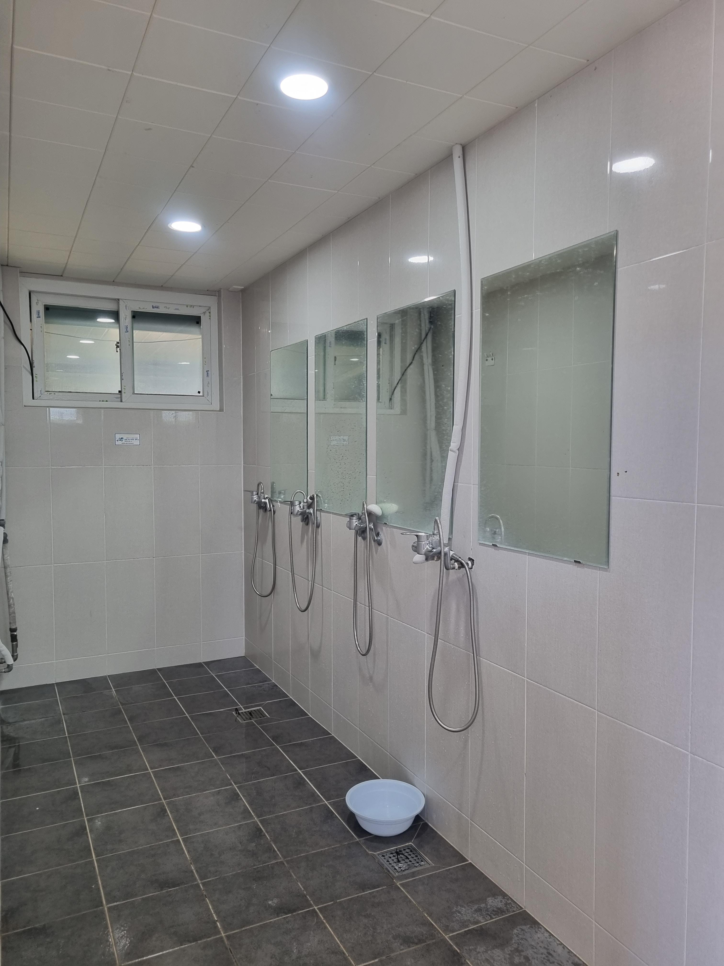 여자 샤워실은 샤워 부스가 4개가 있고, 여자 화장실은 6칸으로 구성되어 있었다.
