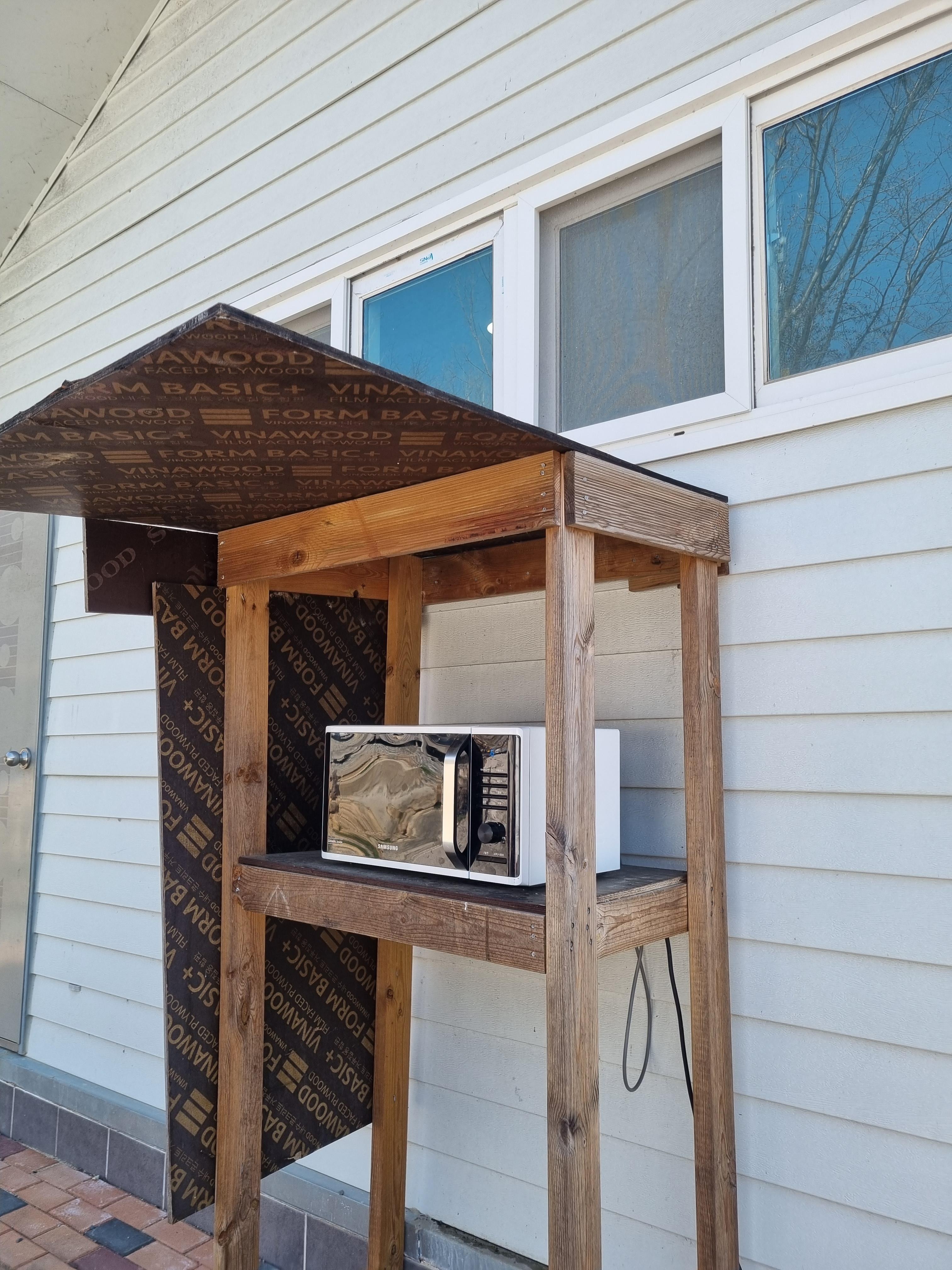 관리동 옆에 전자레인지 한대가 있고, 관리동 뒤쪽에 화로대 세척장이 있다.
